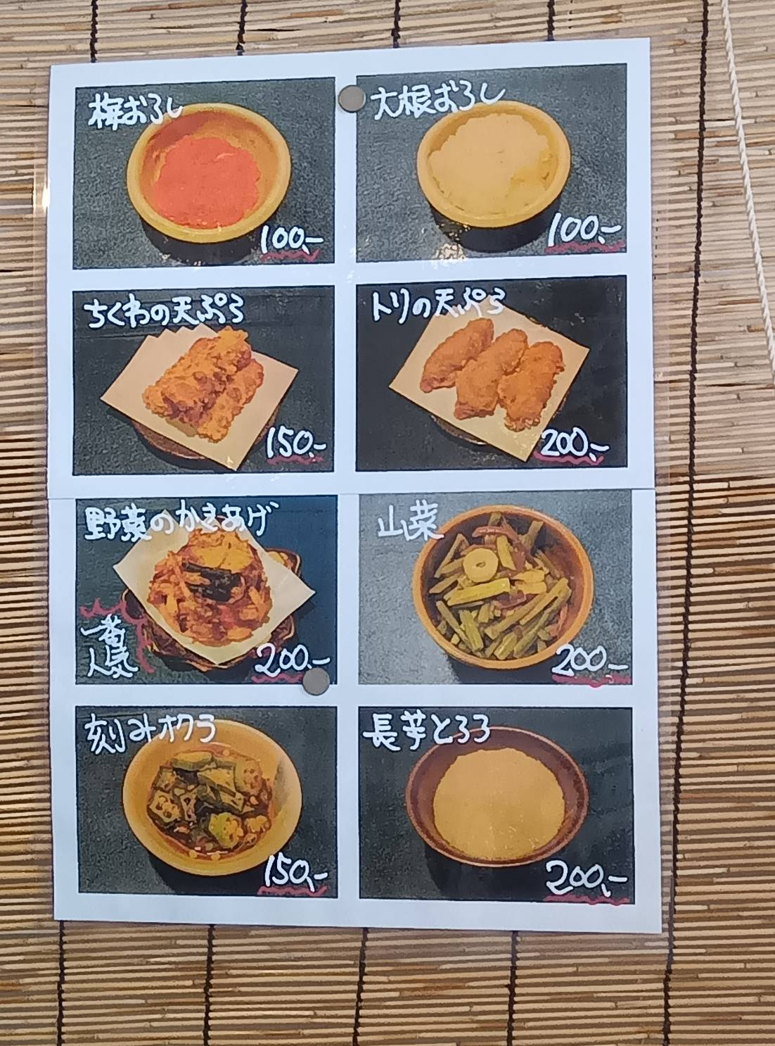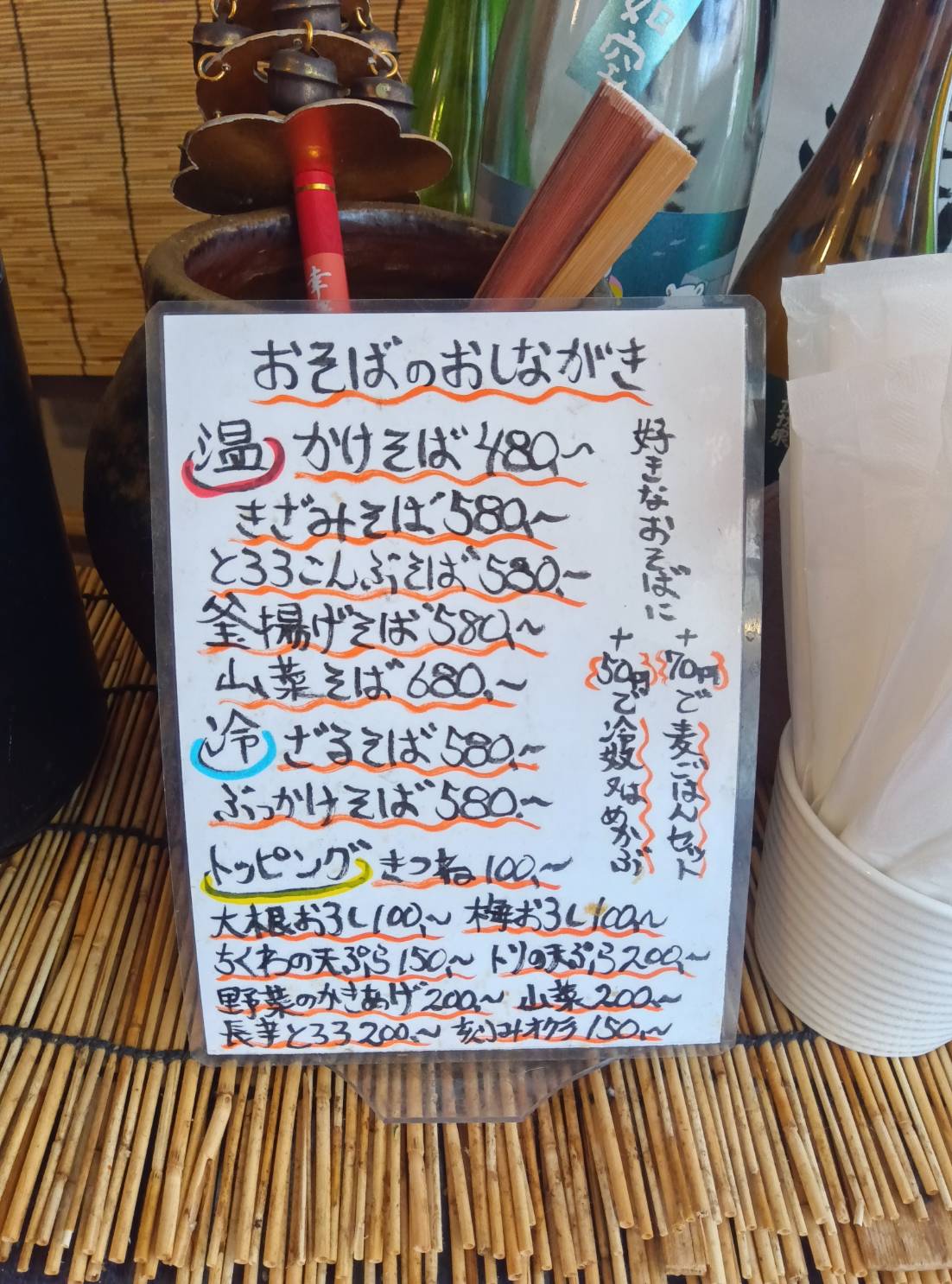 その中からお好きなお蕎麦を選んで有料トッピングと無料トッピングがあるので、