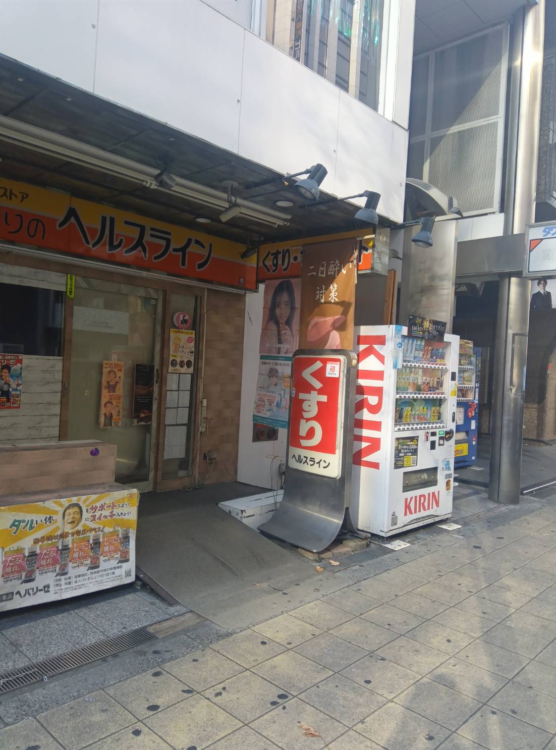 日本橋駅から堺筋沿いを北へと進み、三津寺筋を超えたその先に閉店した薬局が見えてくるので