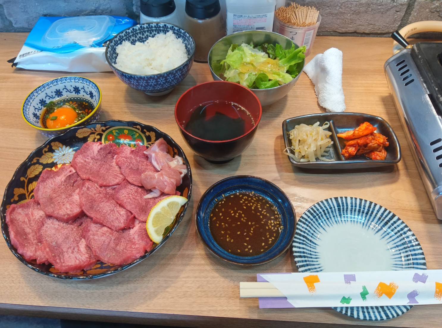 上塩タン(肉増量)とチョレギサラダとわかめスープとキムチとナムル、